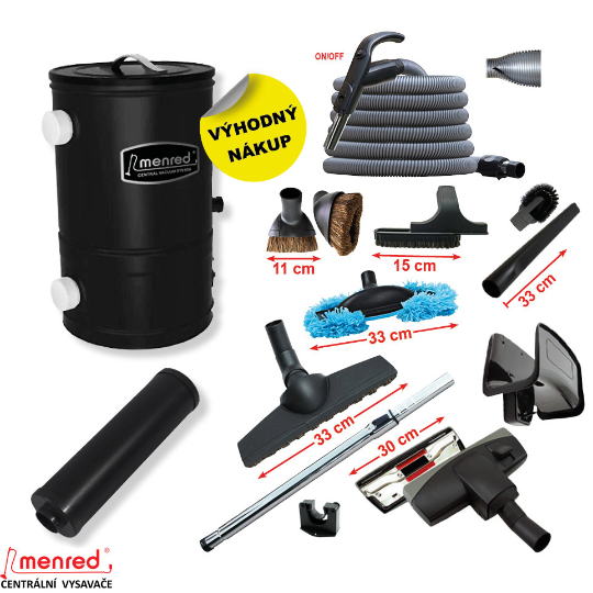 - Centrální vysavače MENRED CVS 1200 + Sada příslušenství pro centrální vysávání PREMIUM s hadicí 9,1 m (11 ks).